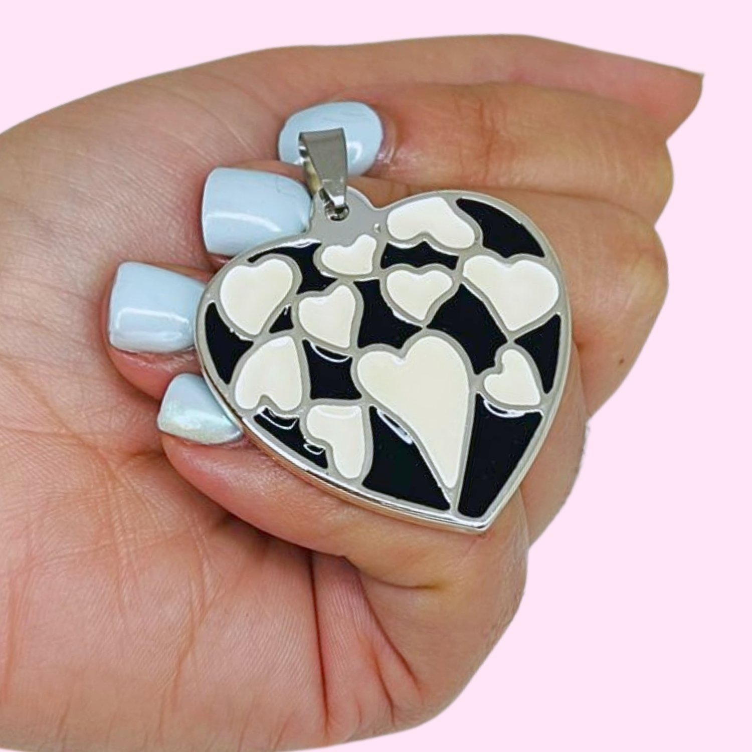 Dije Corazon Esmaltado blanco y negro 48mm Acero Blanco