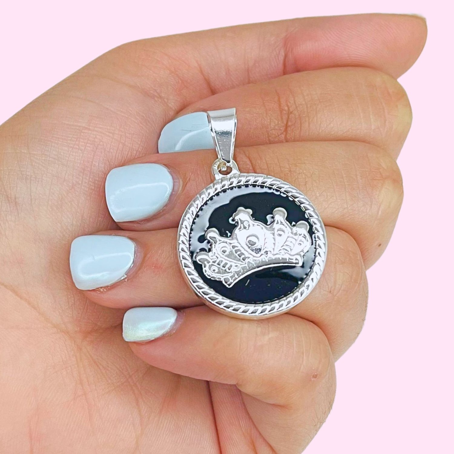 Dije Corona Esmaltado negro 37mm Acero Blanco