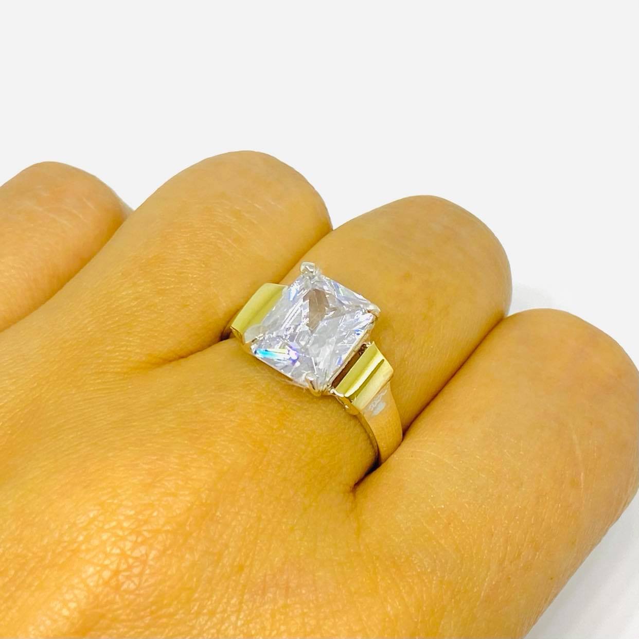 anillo con cubic rectangular grande blanco