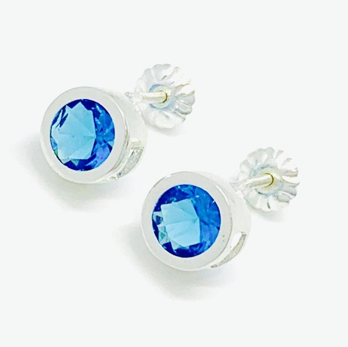 Aros Susanita 7mm a Rosca con cubic Aguamarina