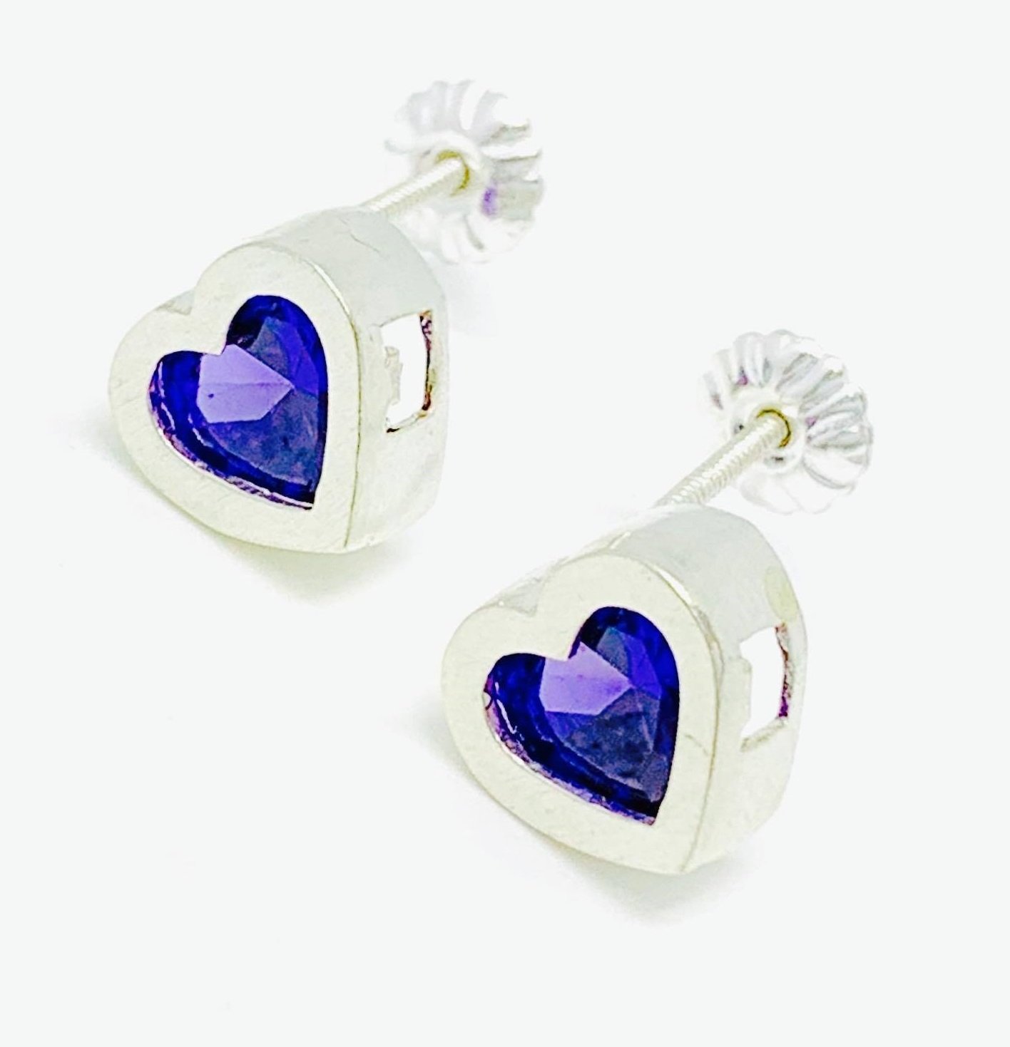 Aros Susanita 8mm a Rosca Corazon con cubic Amatista