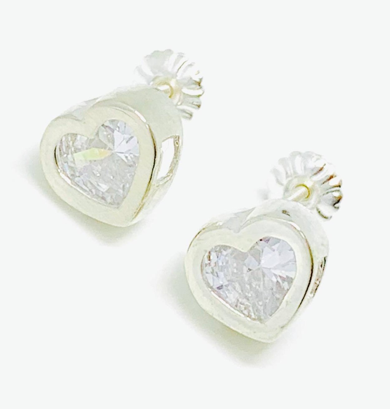 Aros Susanita 8mm a Rosca Corazon con cubic blanco