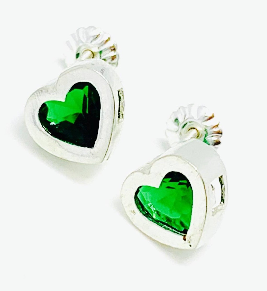 Aros Susanita 8mm a Rosca Corazon con cubic esmeralda