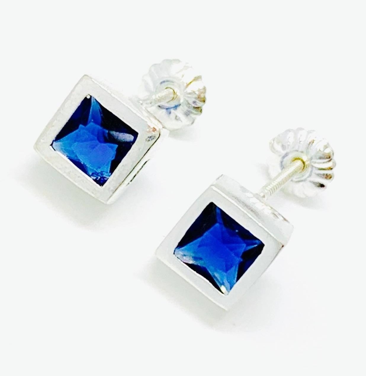 Aros Susanita 6mm a Rosca Cuadrado con cubic zafiro