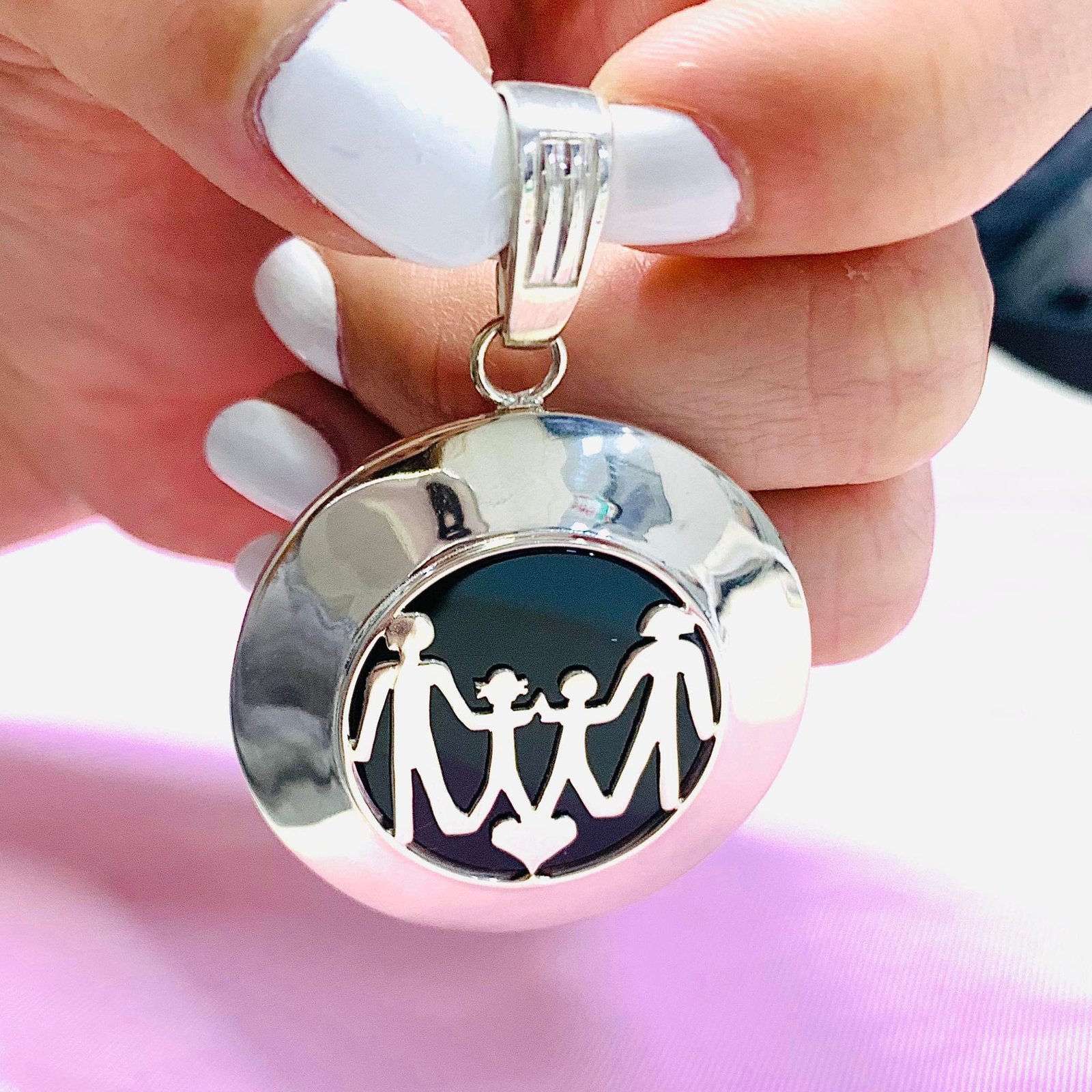 Dije FAMILIA en Onix 55mm de Plata