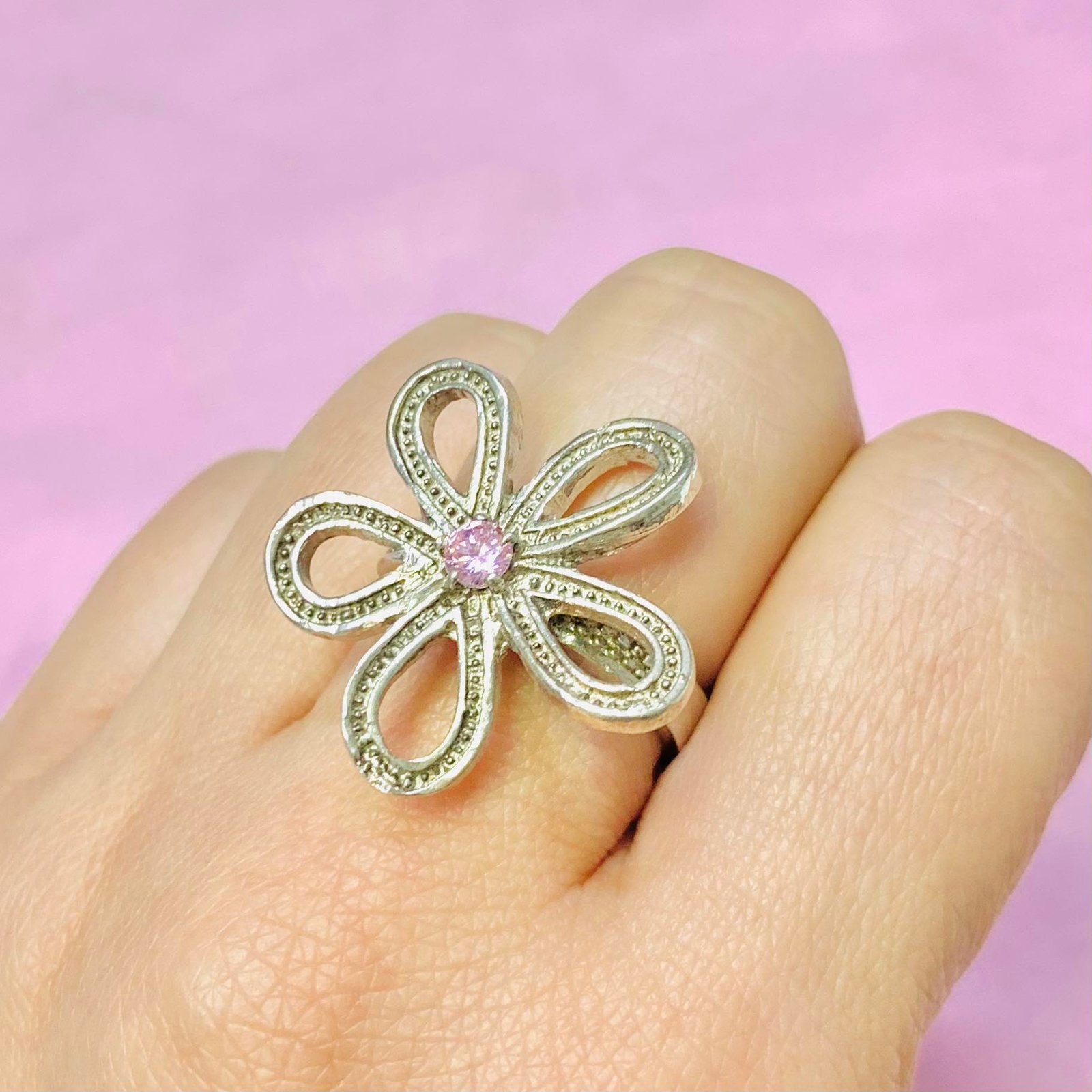 Anillo Flor Grande Rosa 4mm Plata y Oro