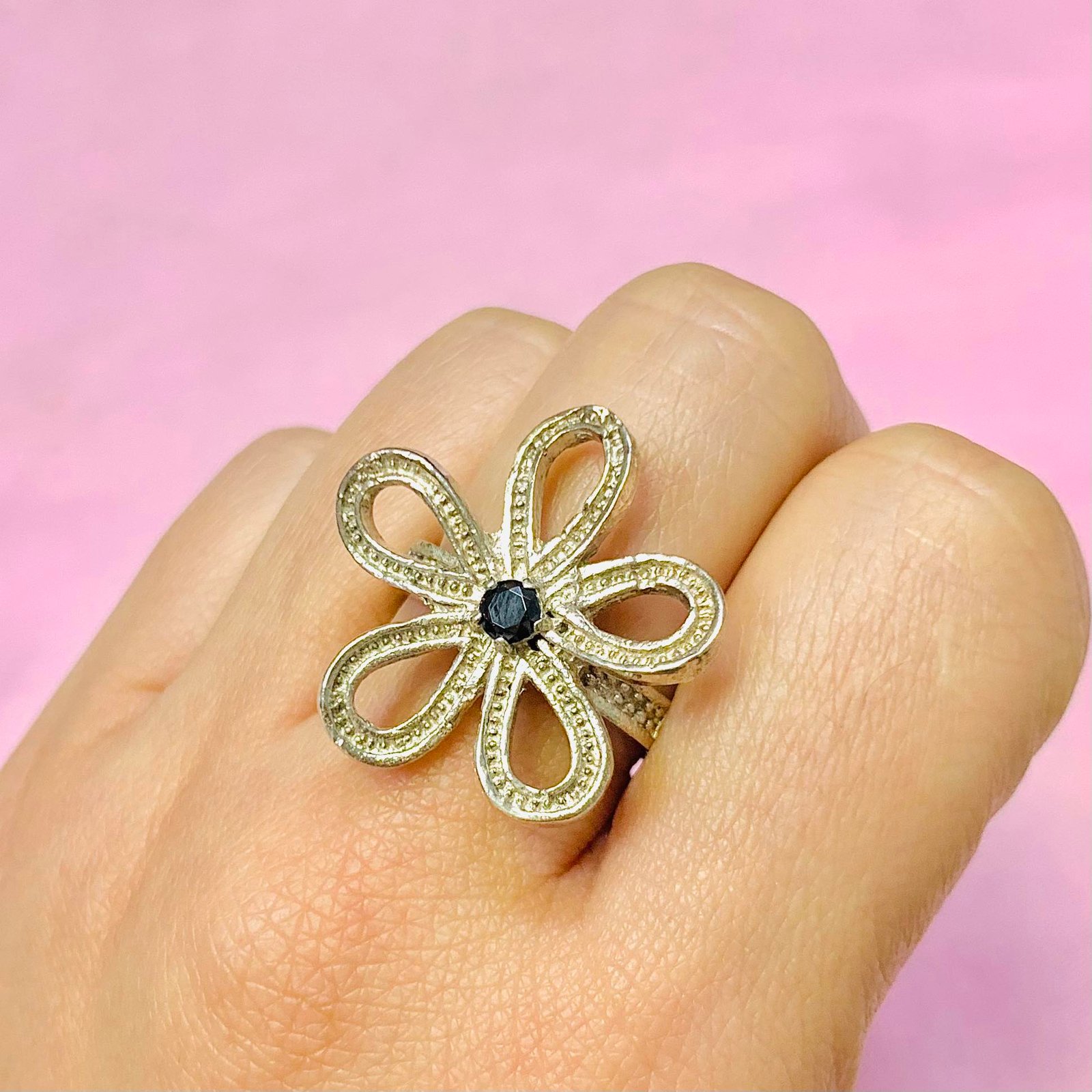 Anillo Flor Grande Amatista 4mm Plata y Oro