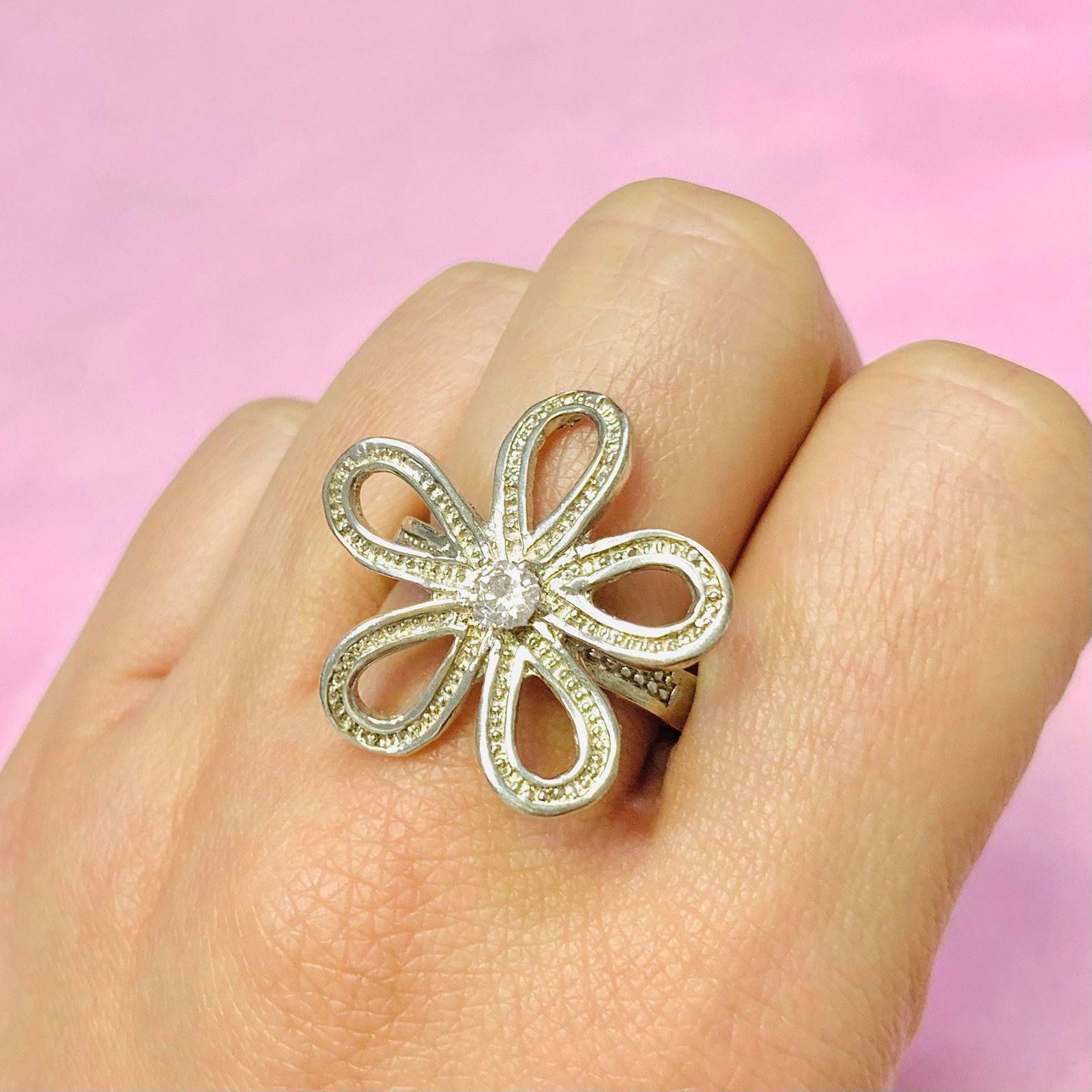 Anillo Flor Grande Blanco 4mm Plata y Oro