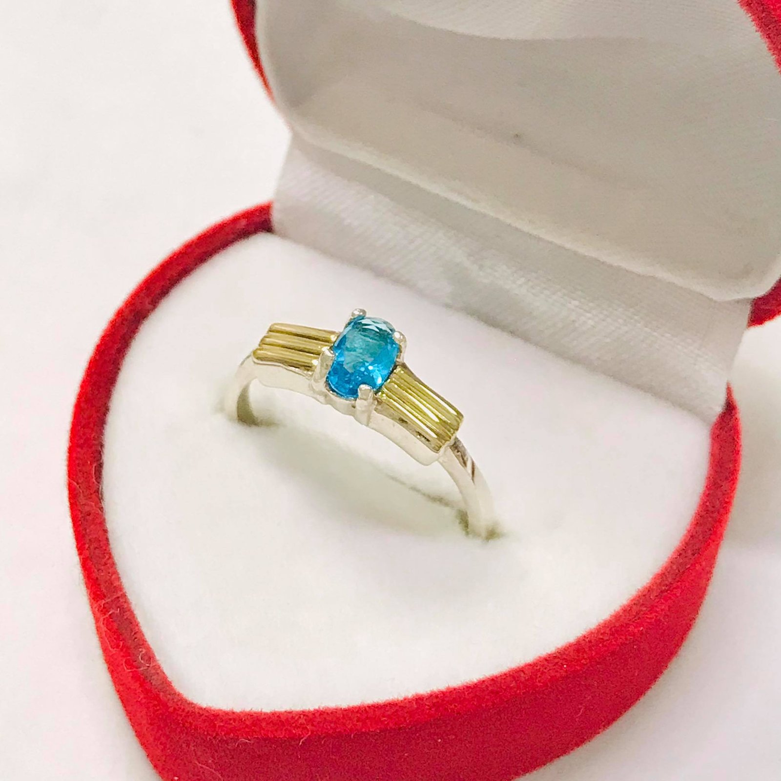 Anillo Tatiana con cubic aguamarina Plata y Oro