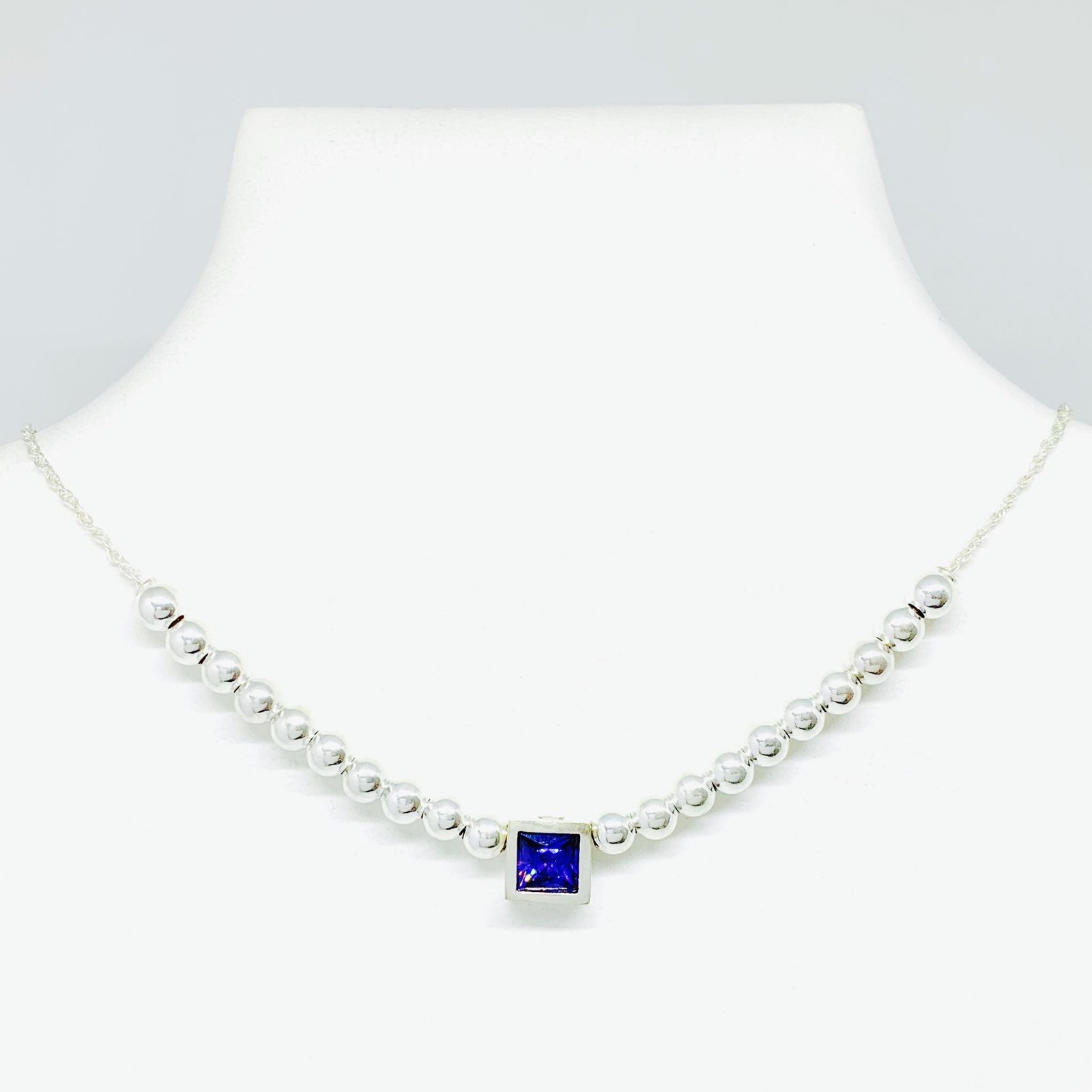 Artículo: CD 125-1Choker con Bolitas de 5 mm y Dije Cuadrado 9mm Amatista