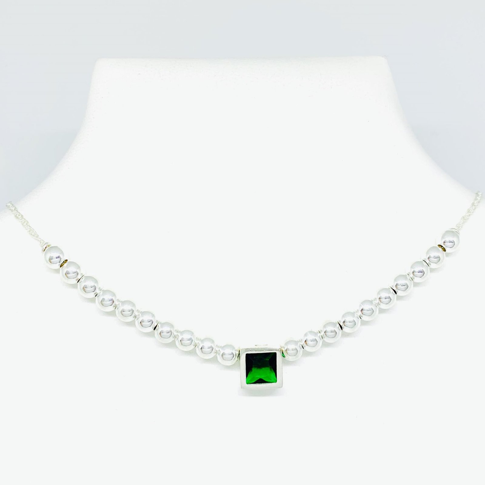 Choker con Bolitas de 5 mm y Dije Cuadrado 9mm Esmeralda