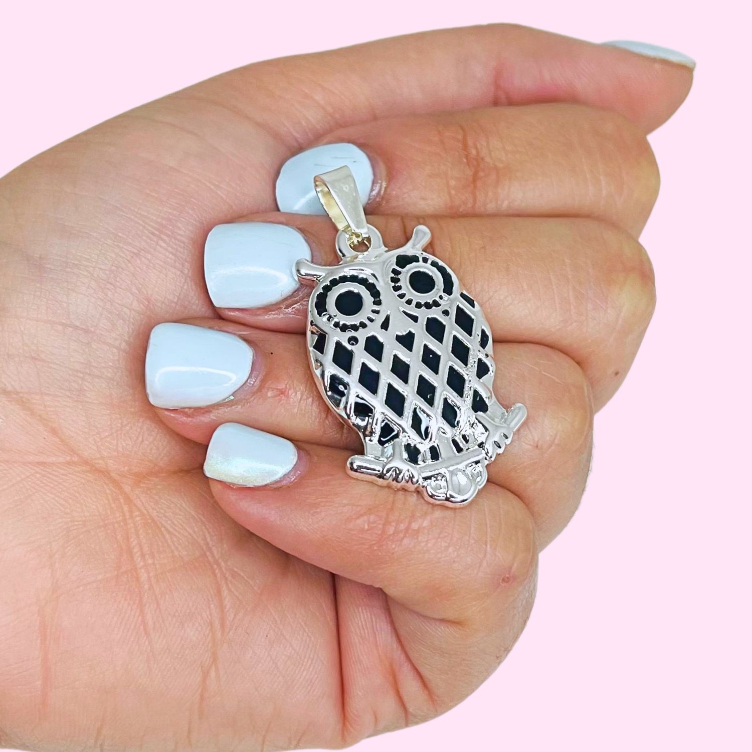 Dije BUHO Esmaltado negro 40mm Acero Blanco