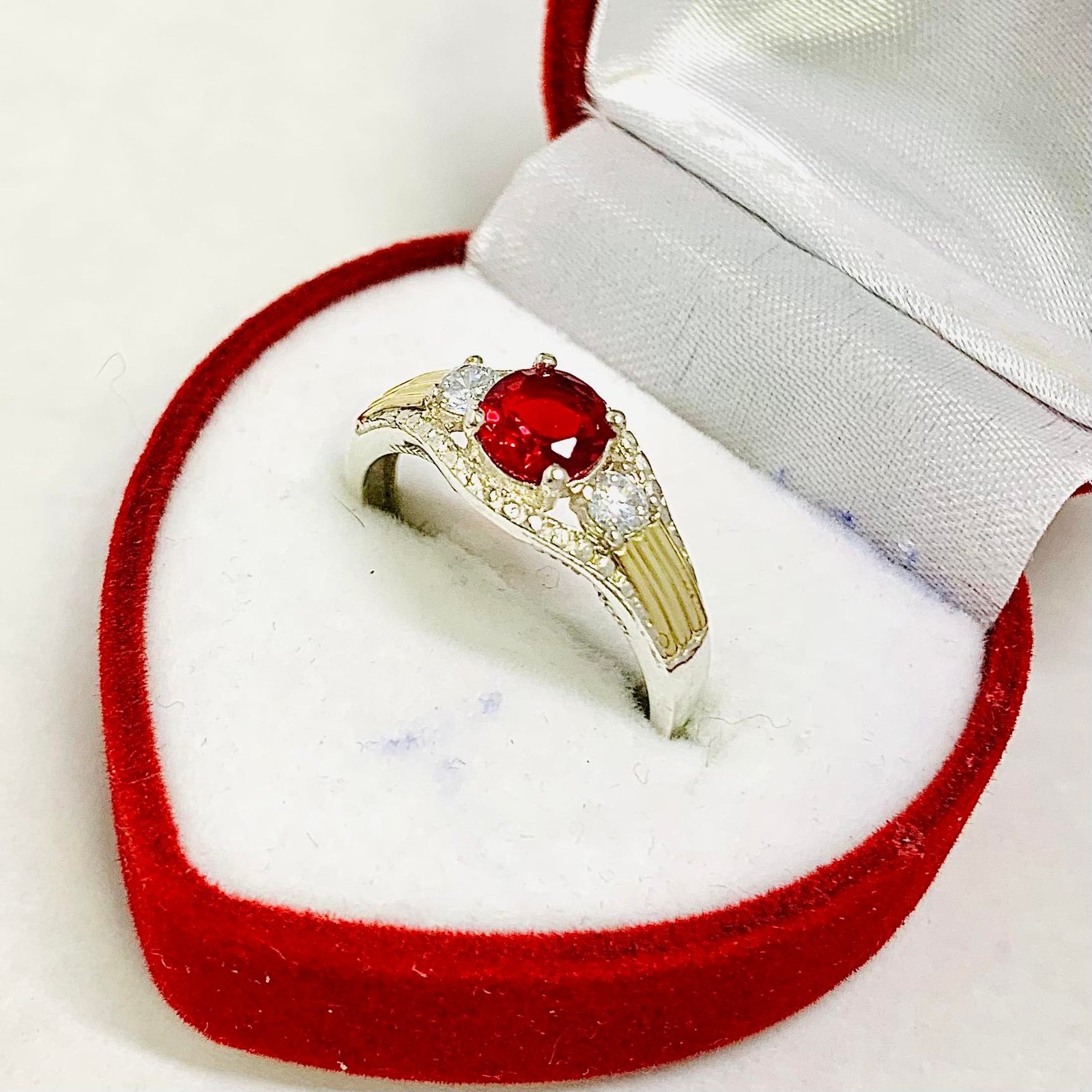 Anillo Gala con cubic rubi de Plata y Oro