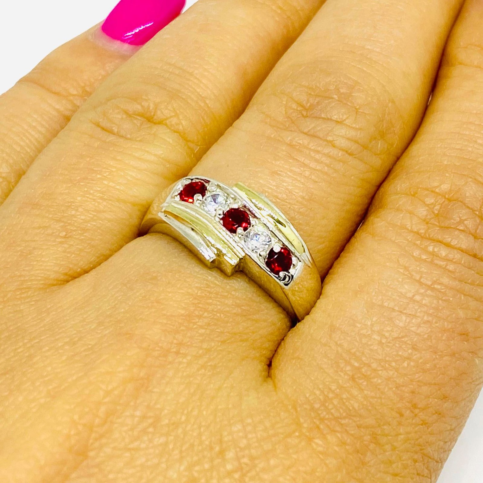 Anillo Caminos con Cubic Blanco-Rubi Plata y Oro