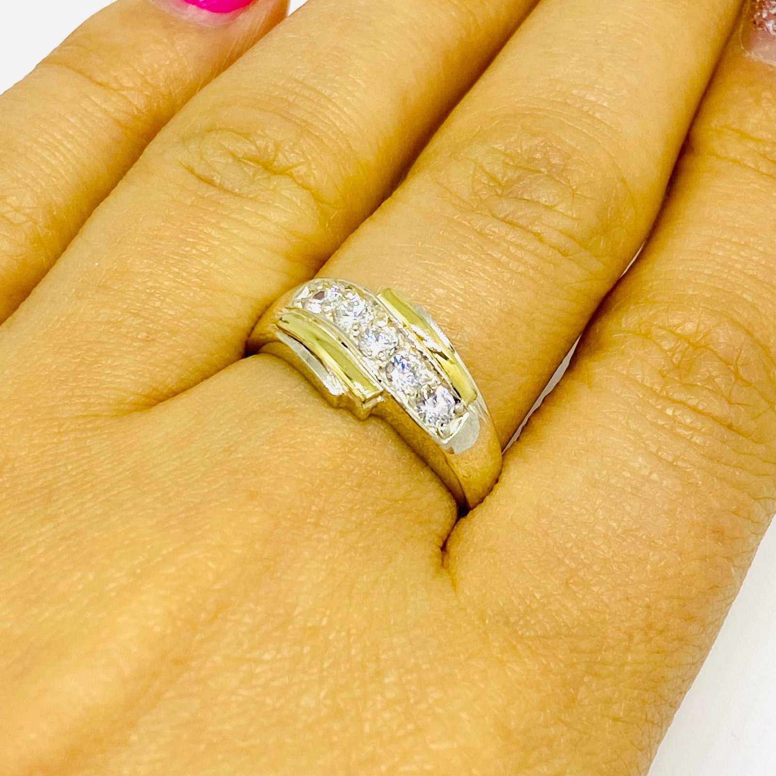Anillo Caminos con Cubic Blanco Plata y Oro