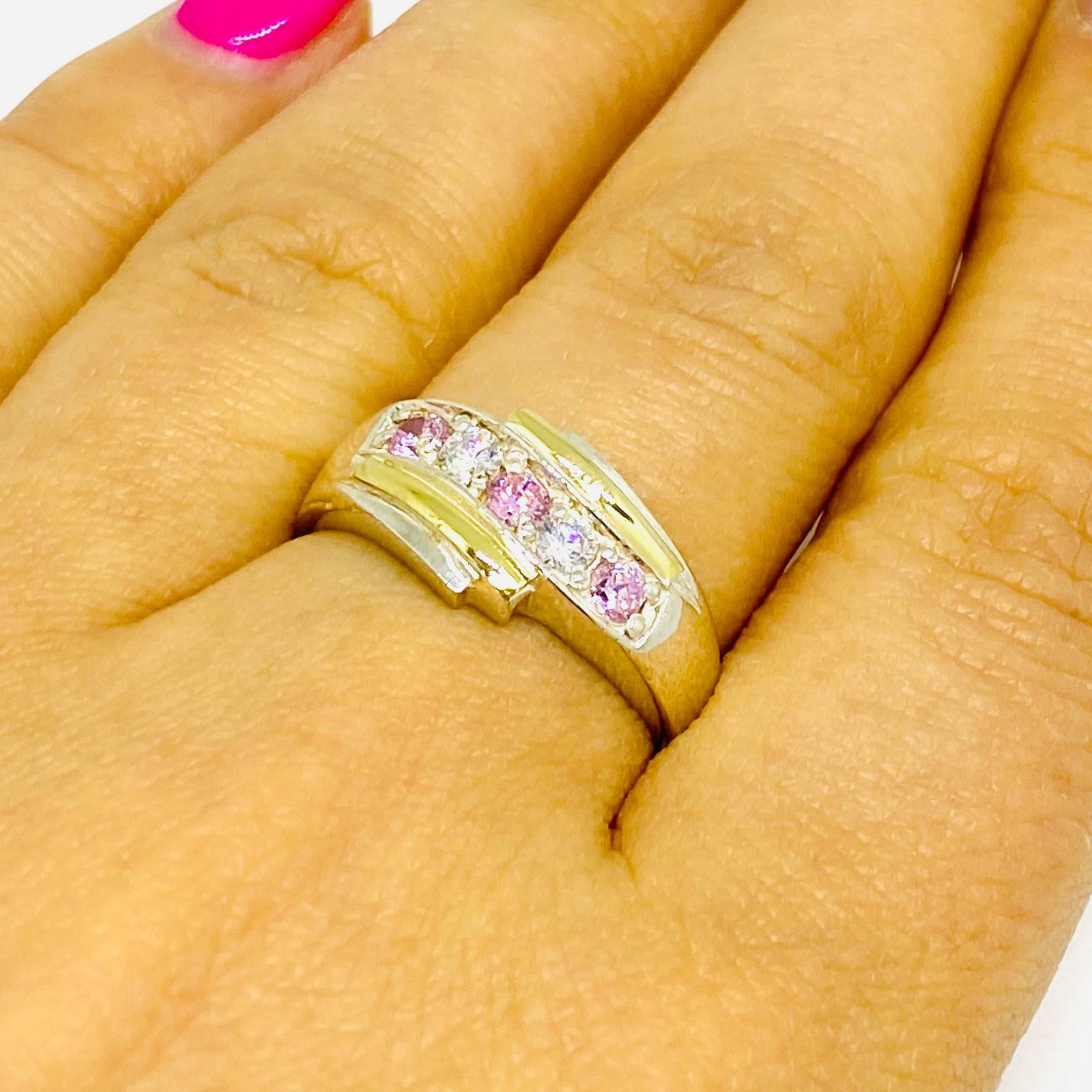 Anillo Caminos con Cubic Blanco-Rosa Plata y Oro