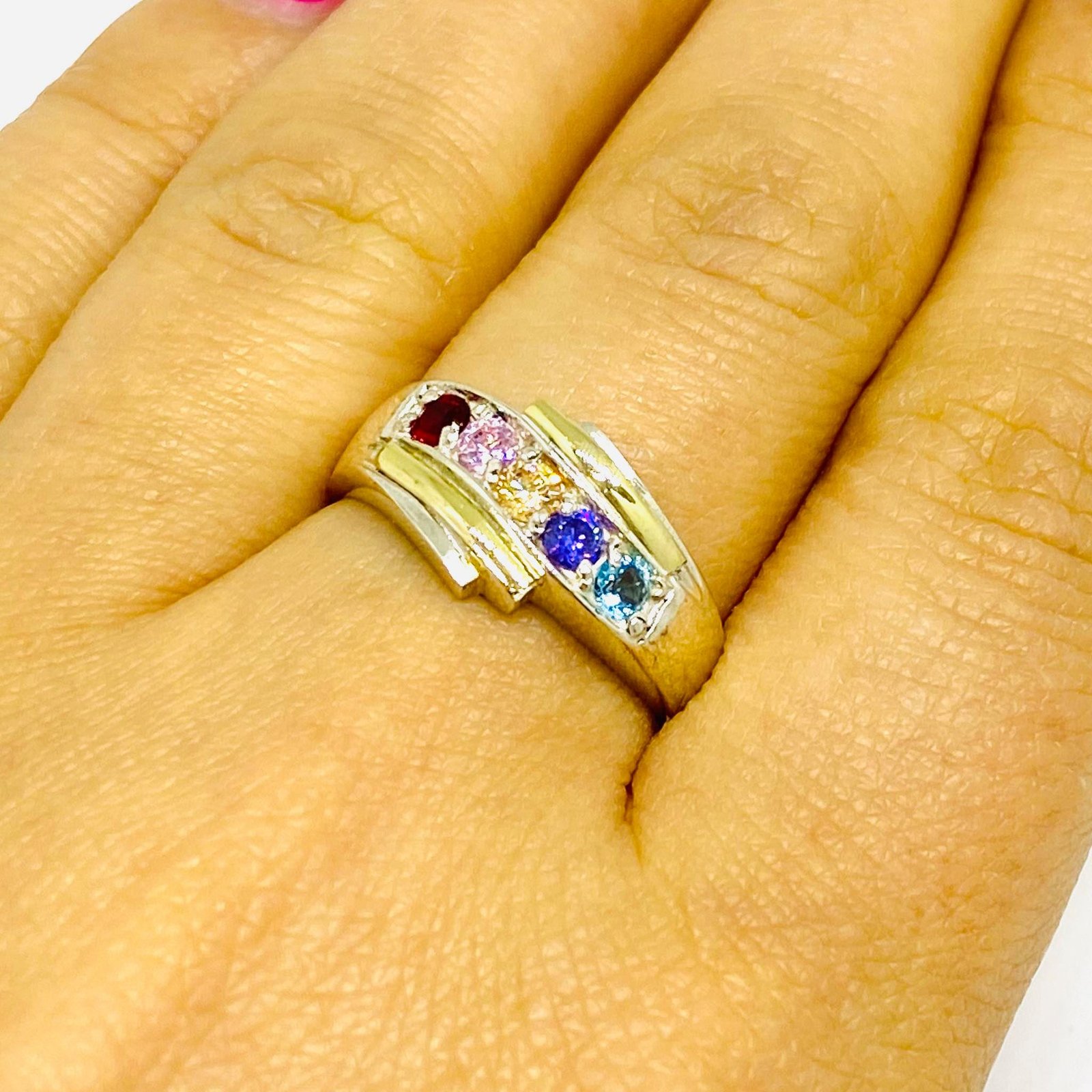 Anillo Caminos con Cubic multicolor Plata y Oro