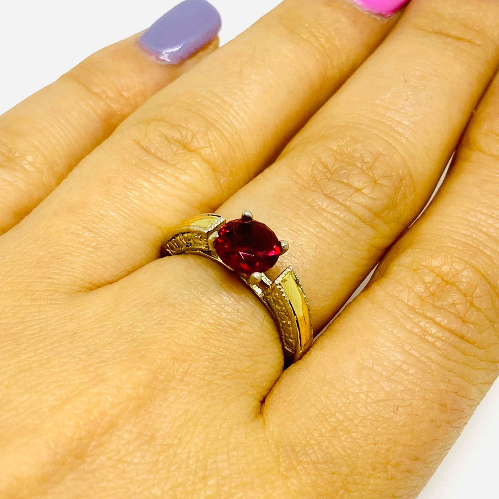 Anillo de compromiso con cubic Rubi 7mm Plata y Oro