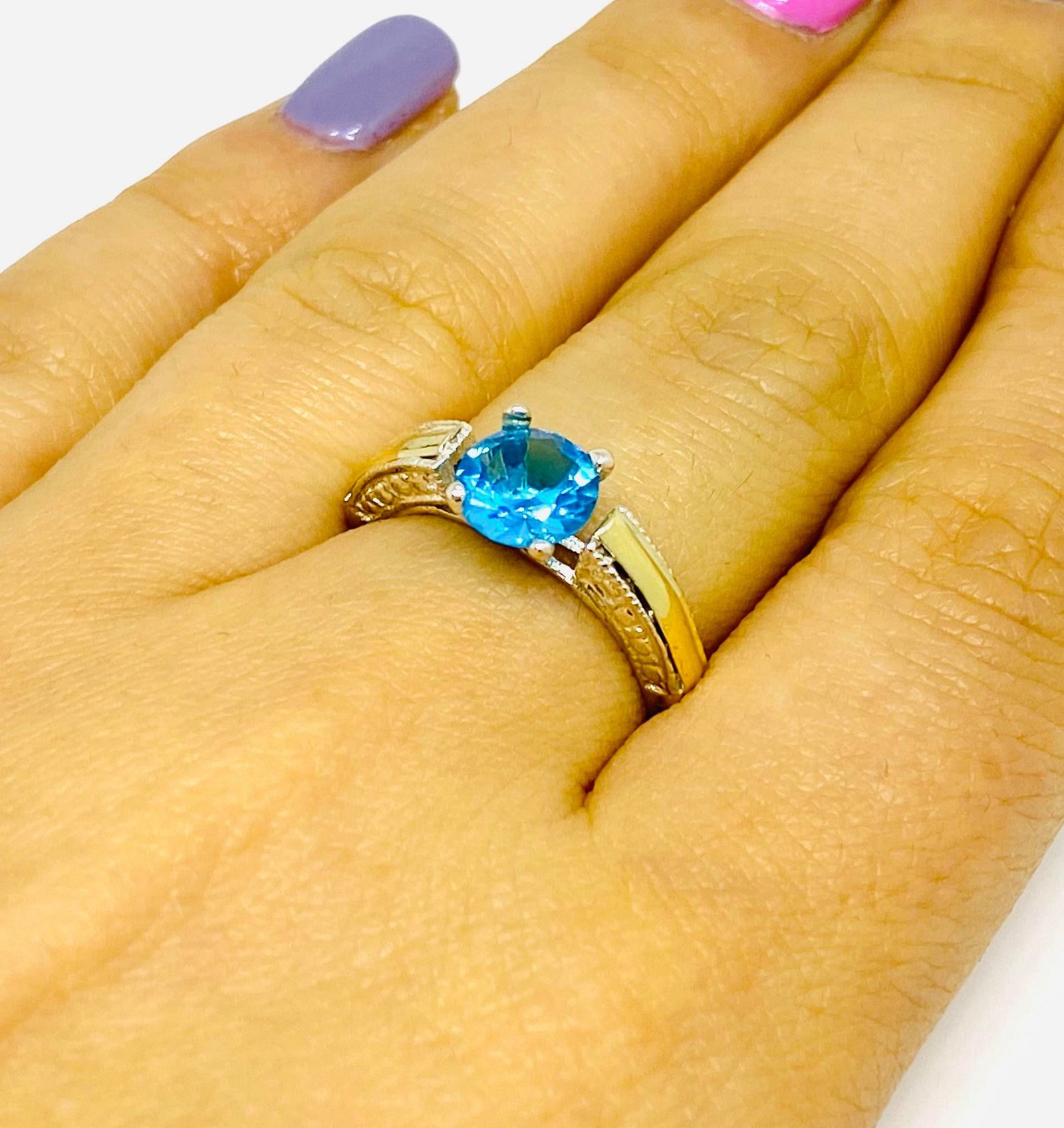Anillo de compromiso con cubic Aguamarina 7mm Plata y Oro