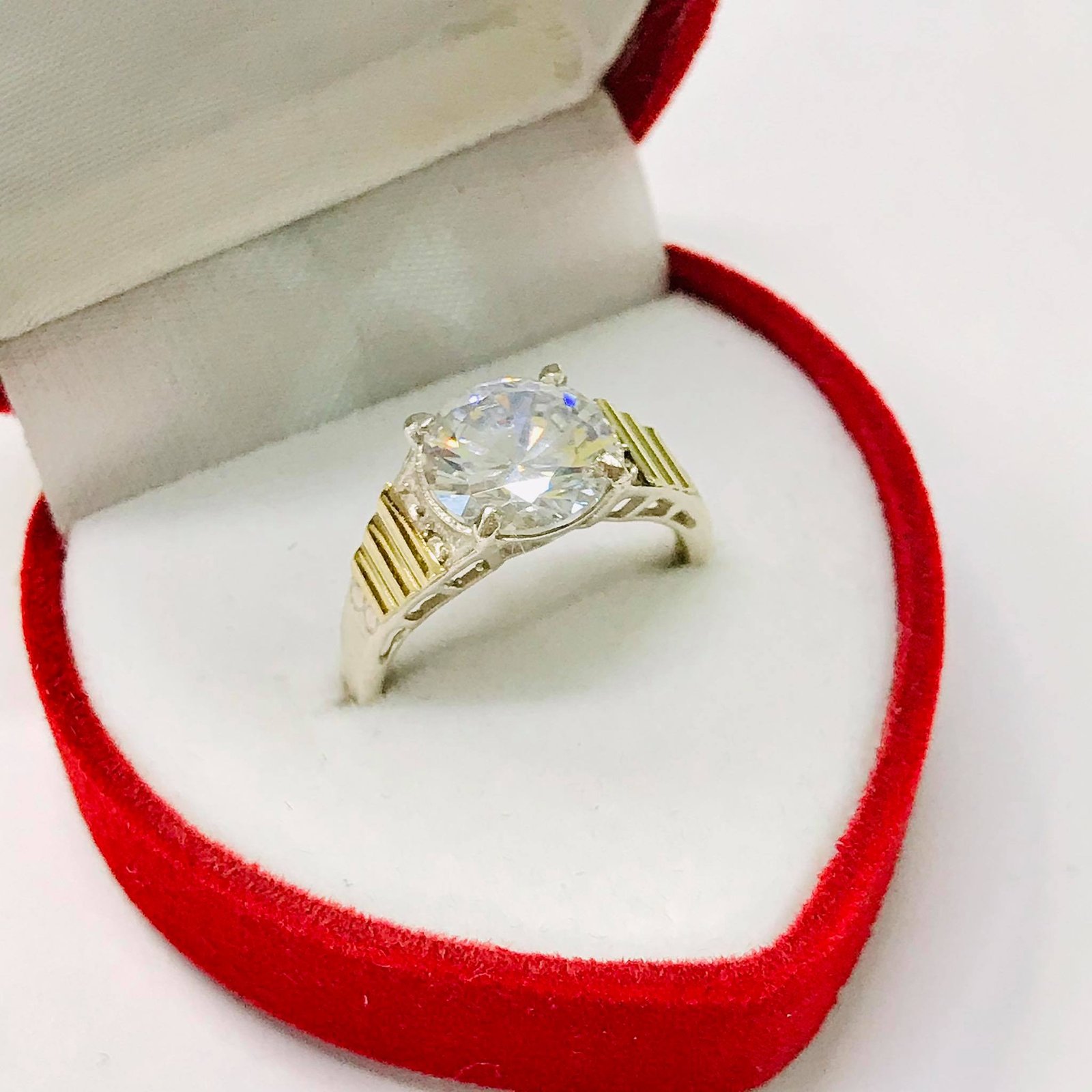 Anillo solitario Veronica con piedra Blanco Plata y oro
