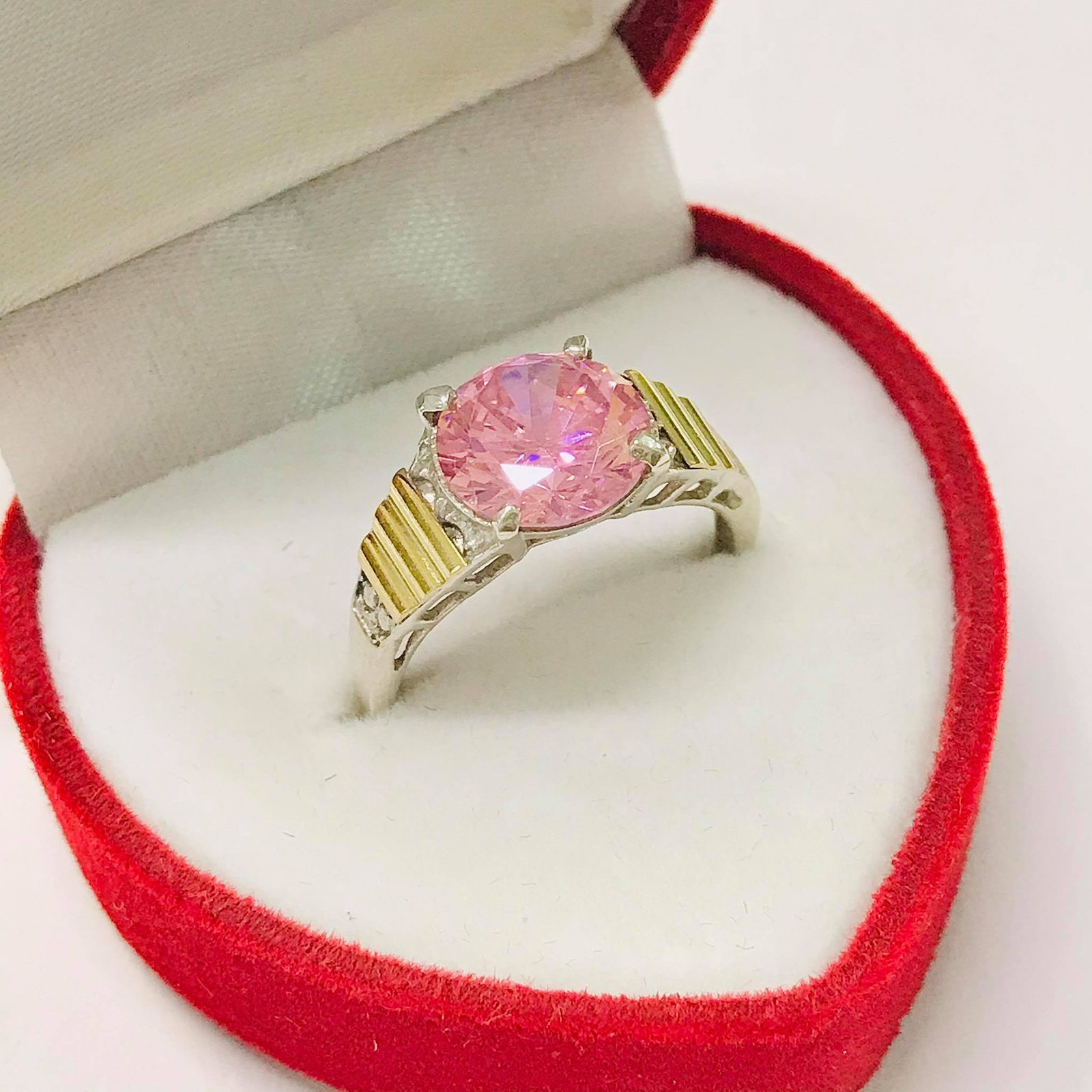 Anillo solitario Veronica con piedra Rosa Plata y oro