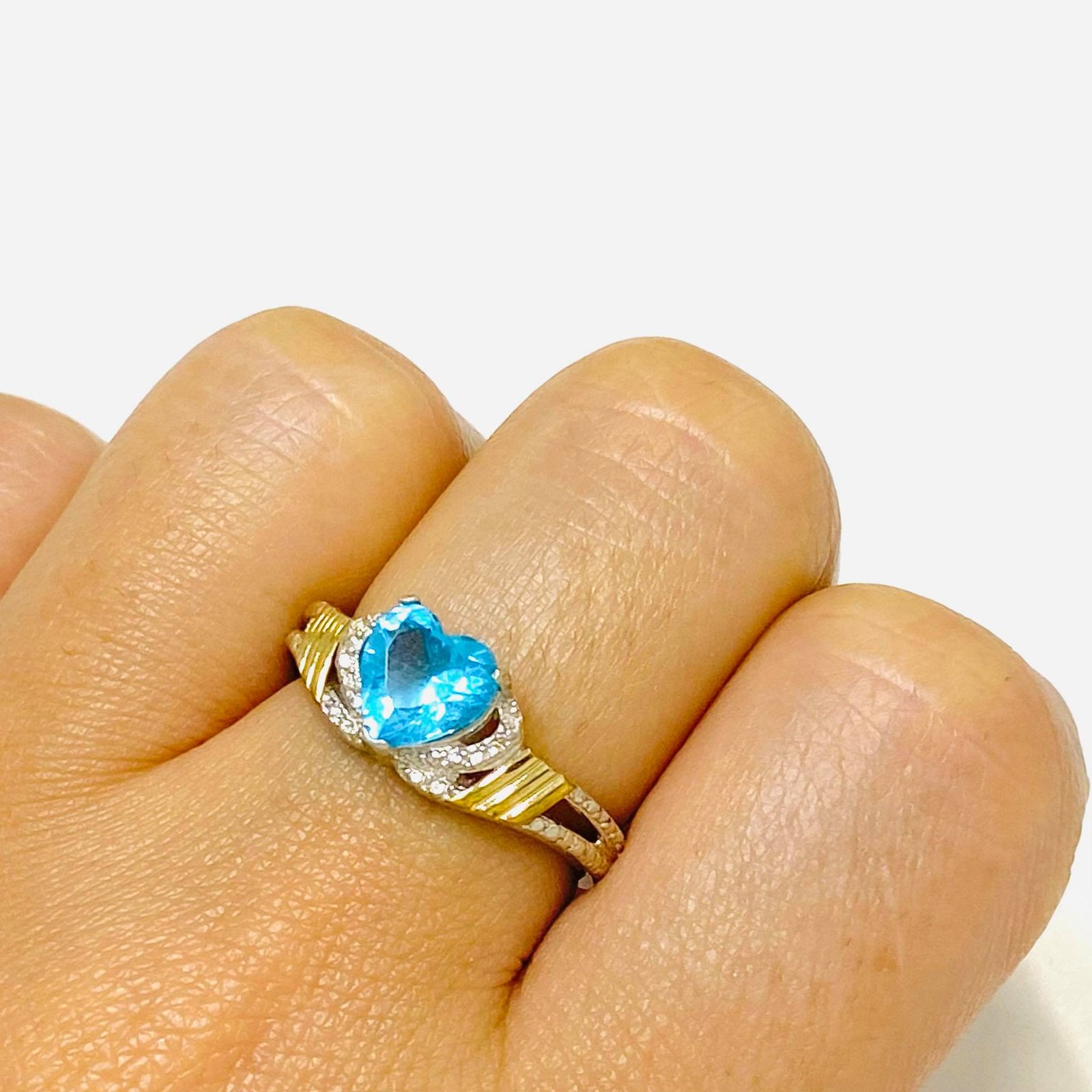 Anillo Solitario Corazon aguamarina Plata y Oro