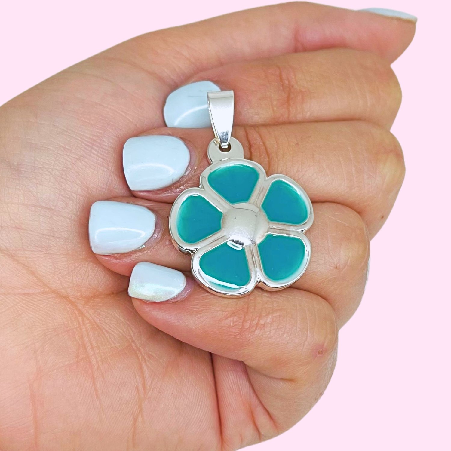 Dije Flor aguamarina 37mm Acero Blanco