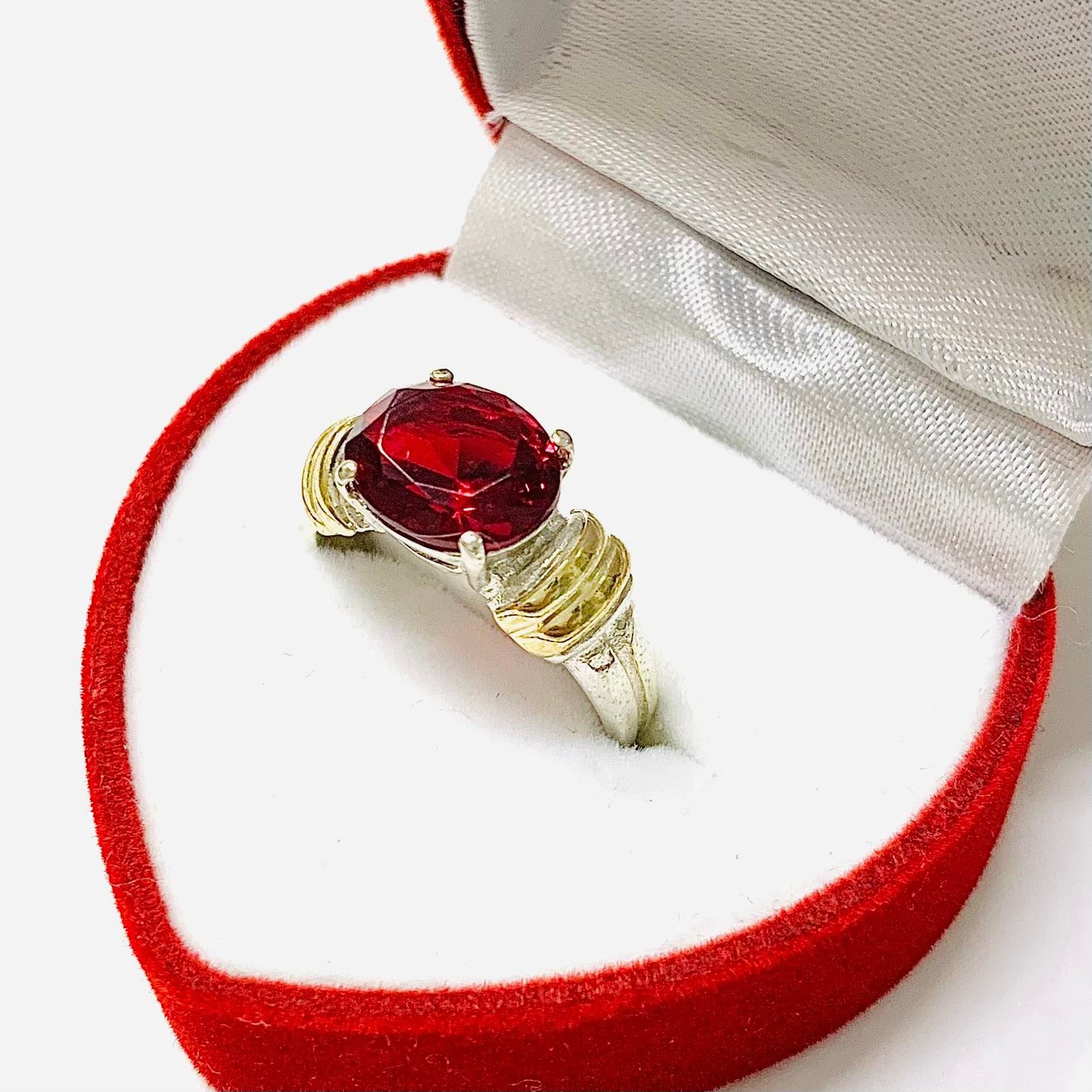Anillo con cubic ovalado rubi de Plata y Oro