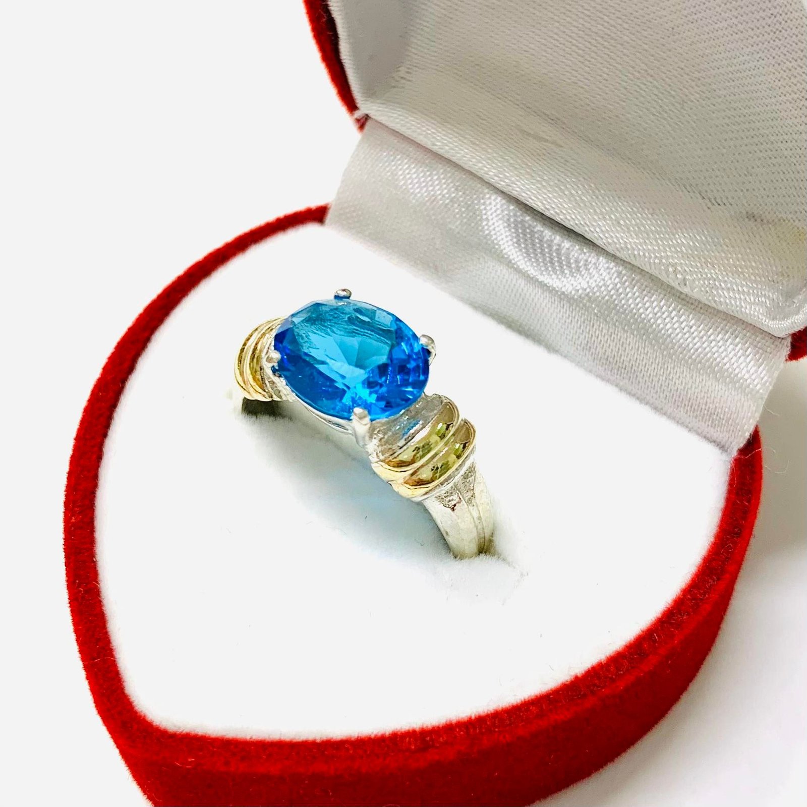 Anillo con cubic ovalado agua marina de Plata y Oro