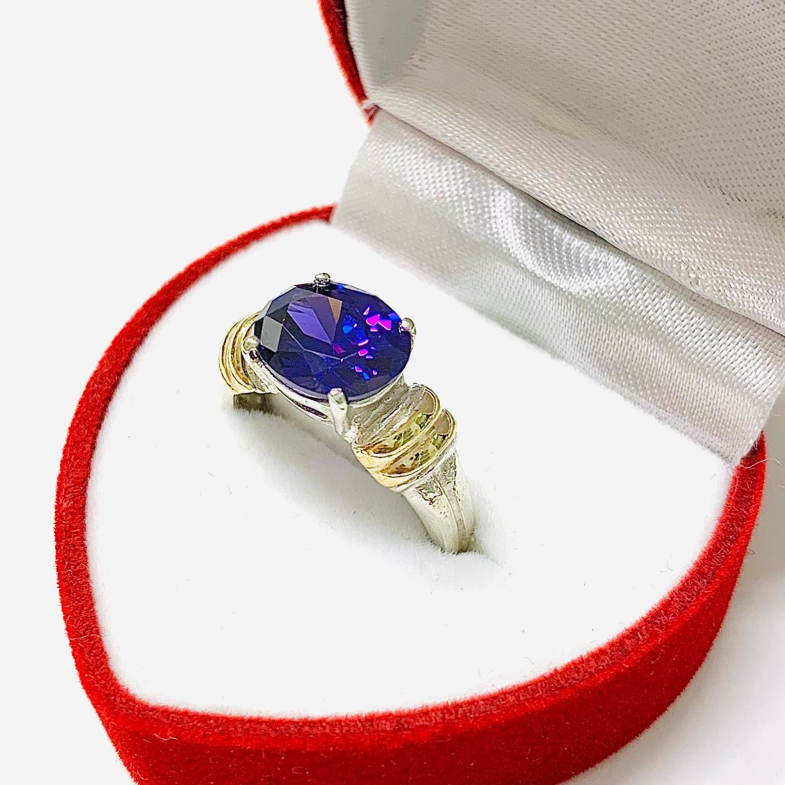 Anillo con cubic ovalado amatista de Plata y Oro