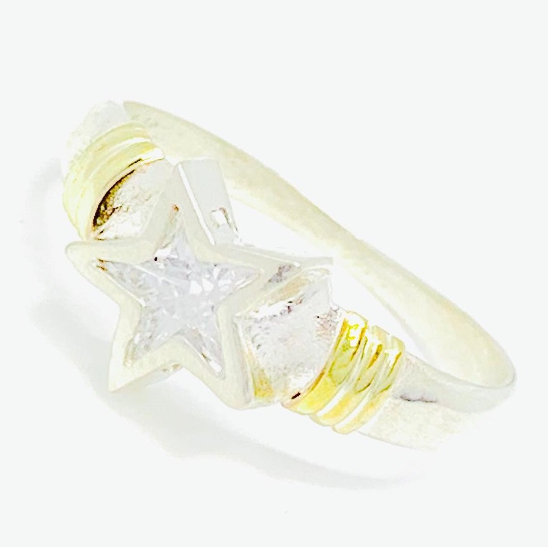 Anillo Estrella 10mm Blanco de Plata y Oro