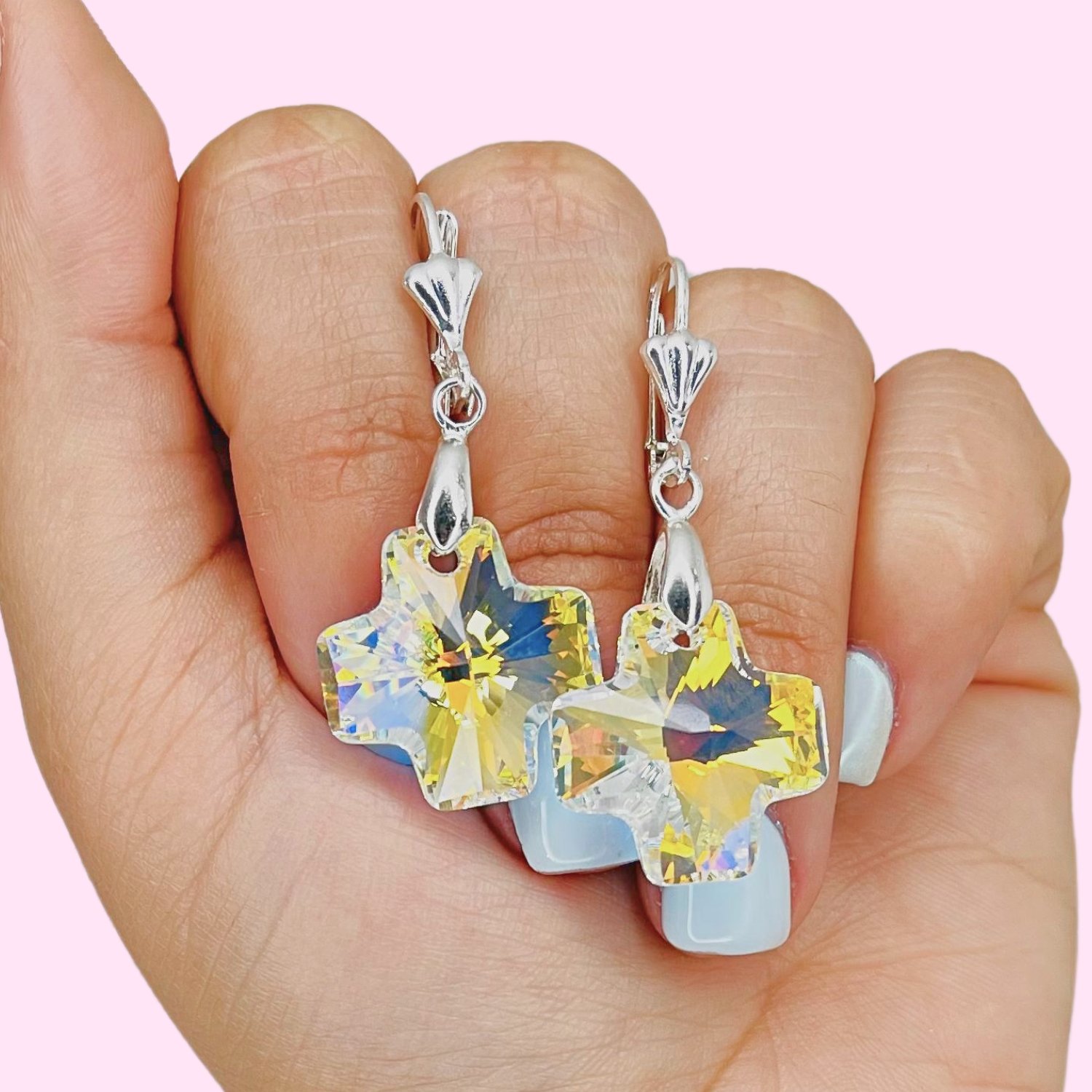 Artículo: AR 365-5Aros Swarowski Cruz aurora boreal 45mm