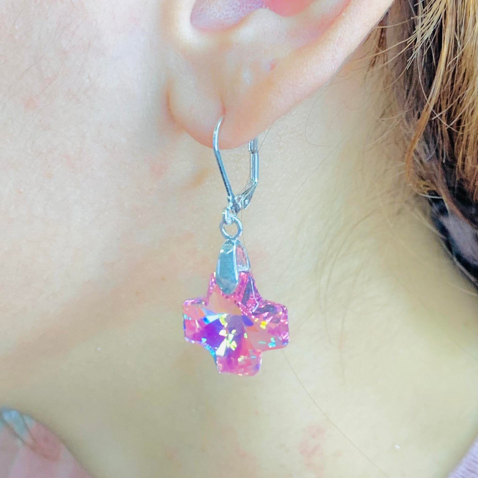 Aros Swarowski Cruz Rosa 45mm de Plata