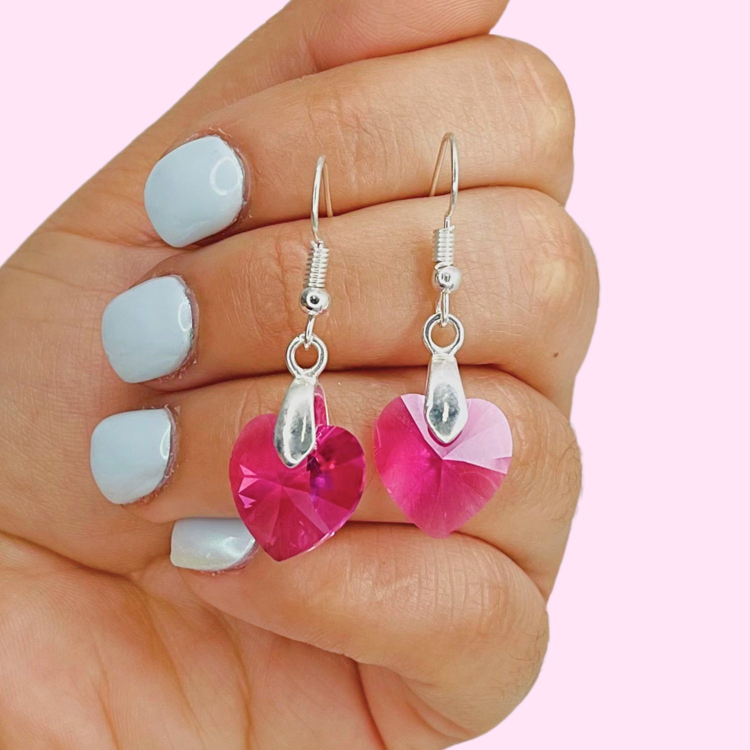 Aros Swarowski corazon fiusha 40mm de Plata 925