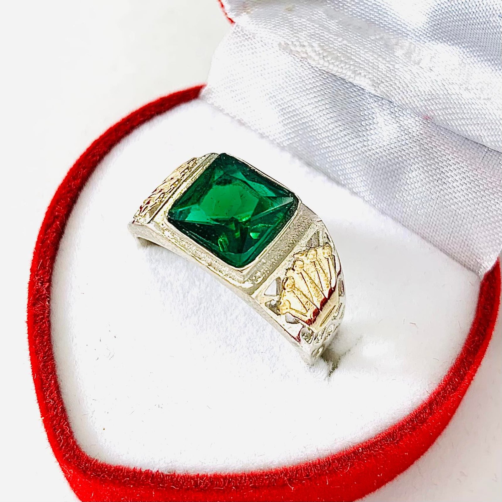Artículo: AP 049-4Anillo para hombre con cubic cuadrado esmeralda y coronitas a los costados