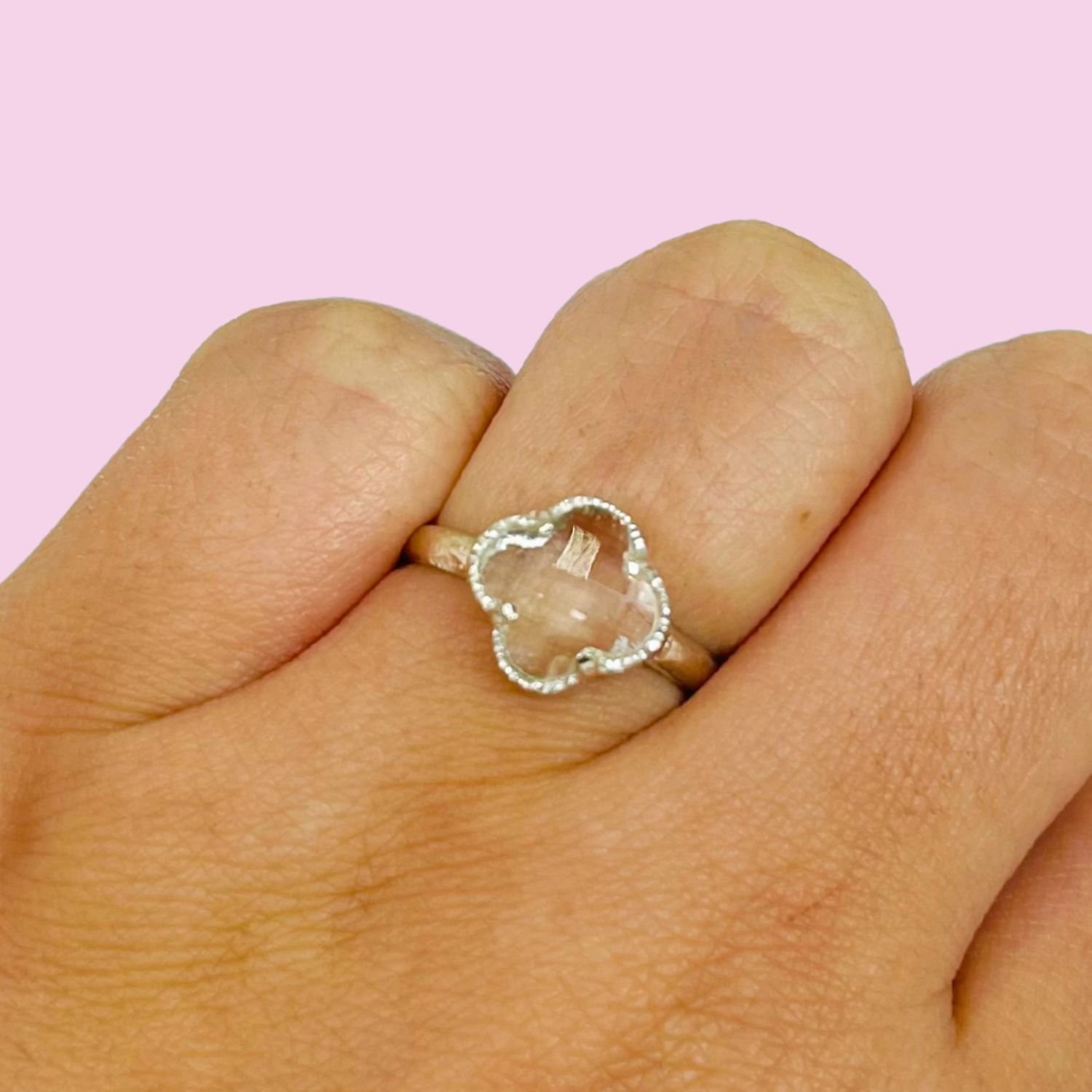 Anillo Trébol Inflado Blanco Plata 925