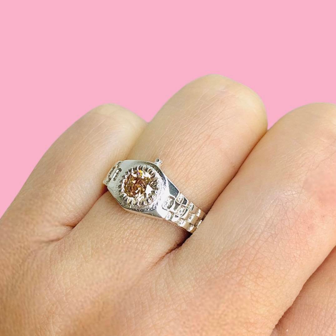 Anillo Rolex Unisex con piedra Ambar de Plata