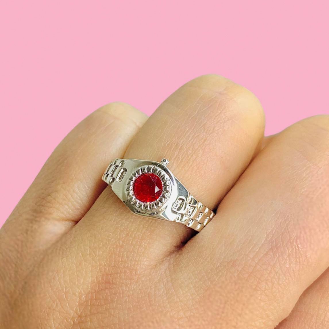 Anillo Rolex Unisex con piedra Rubi de Plata