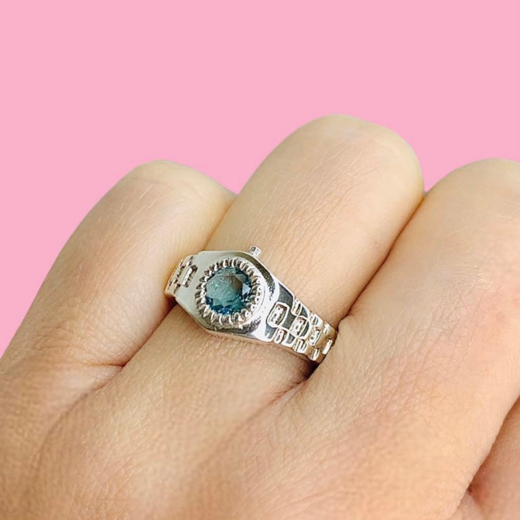 Anillo Rolex Unisex con piedra Aguamarina de Plata