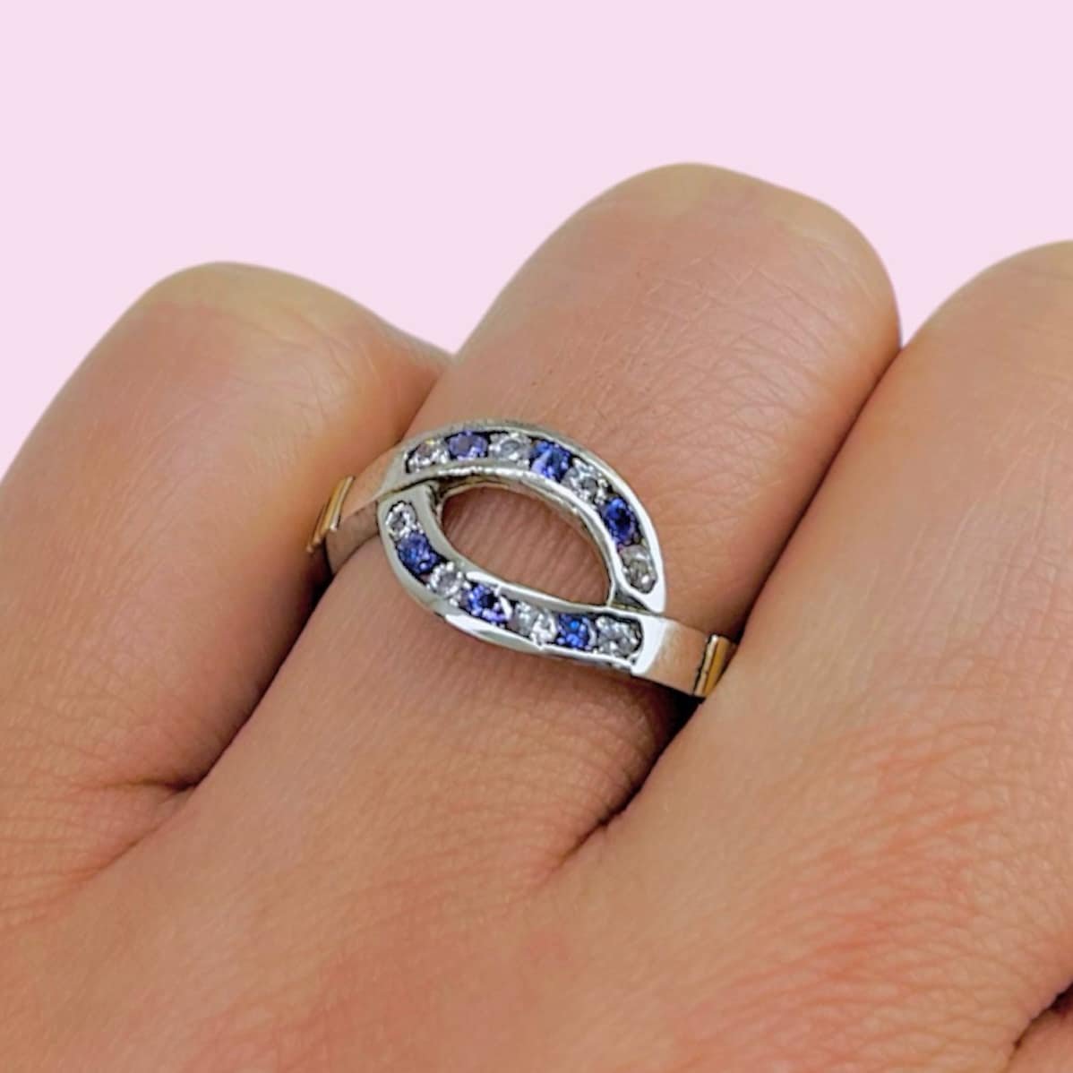 Anillo Ojo con cubic violeta y blanco de Plata y Oro