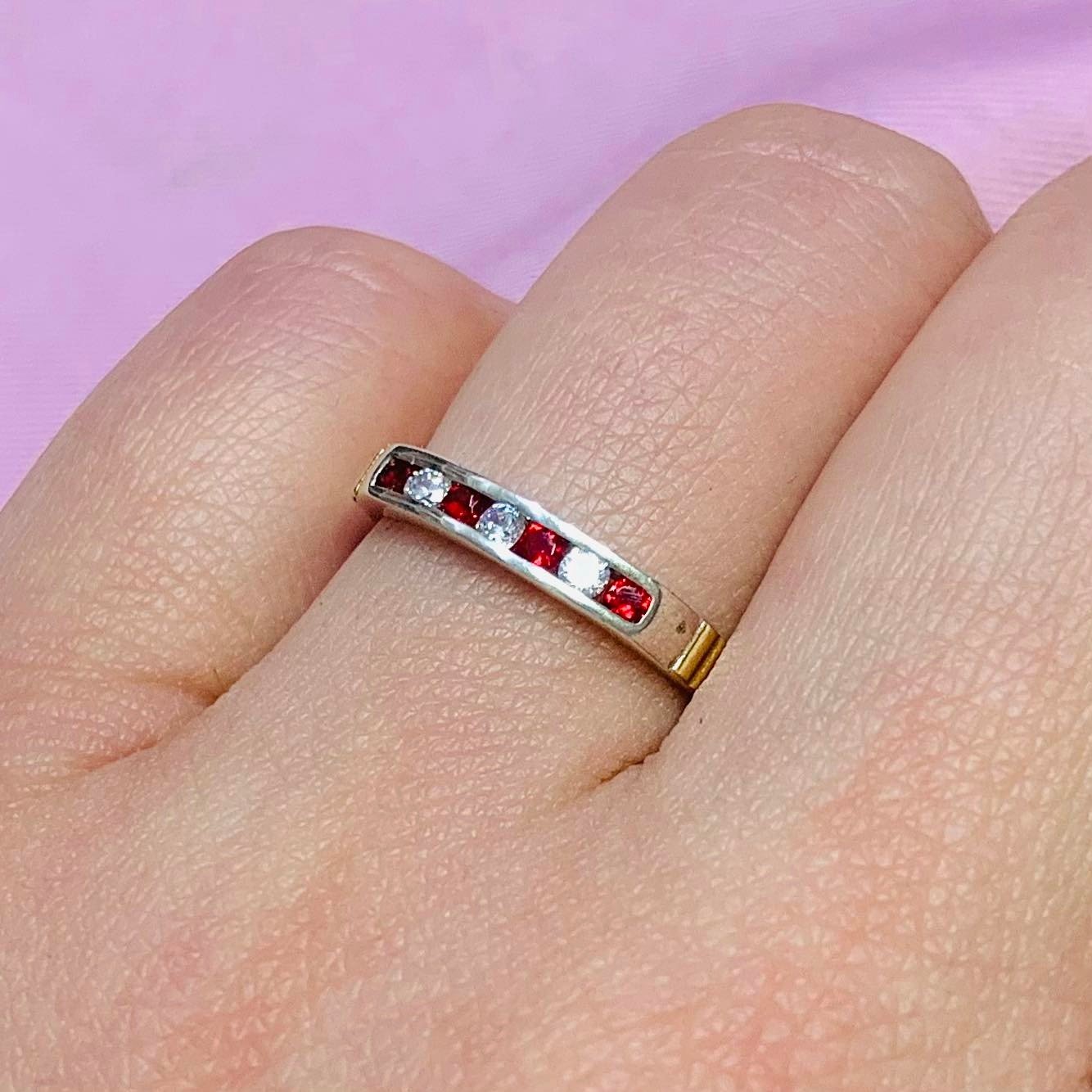 Anillo medio sinfin con piedras Blanco-Rubi de Plata y Oro