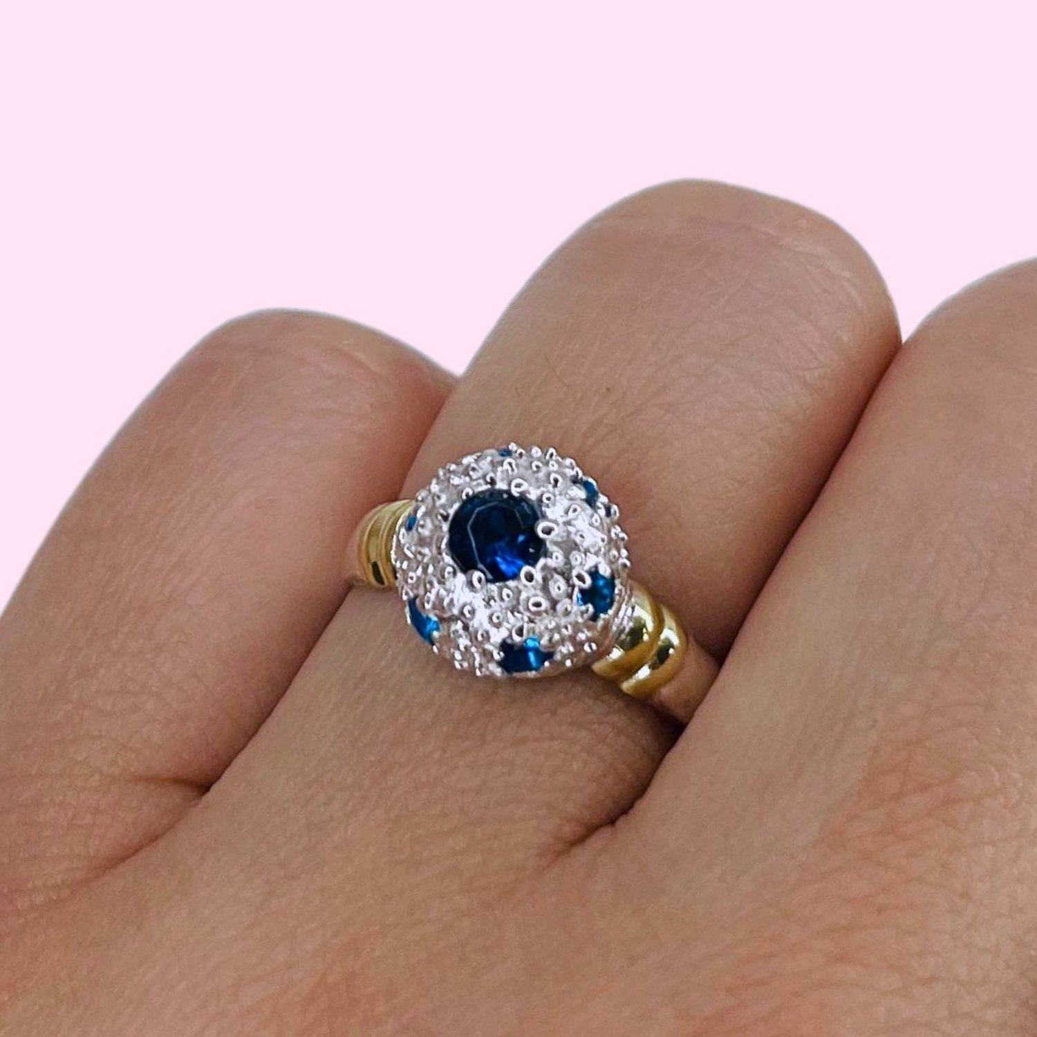 Anillo Erizo Grande Zafiro de Plata y Oro