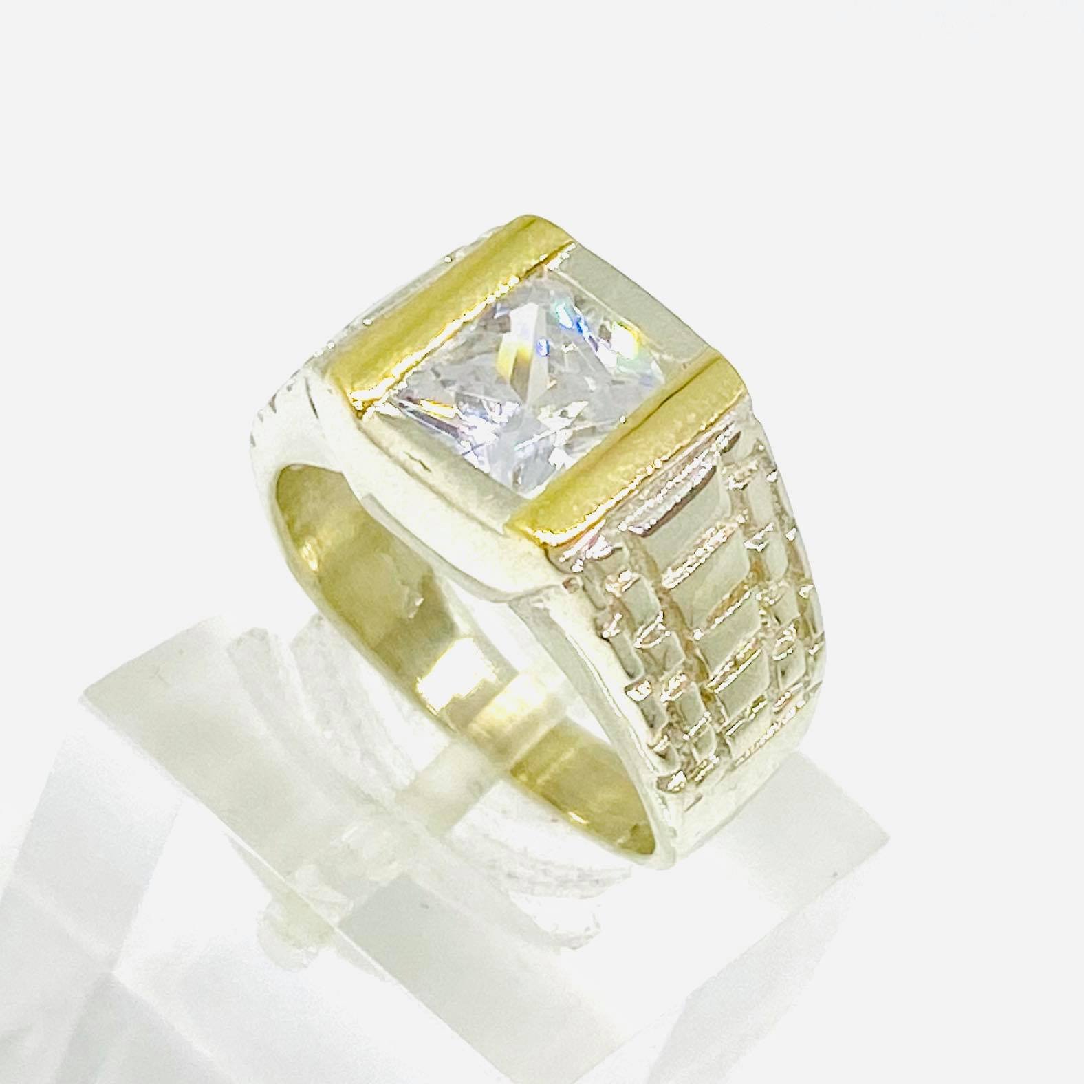Anillo rollex con cubic cuadrado blanco Plata y Oro