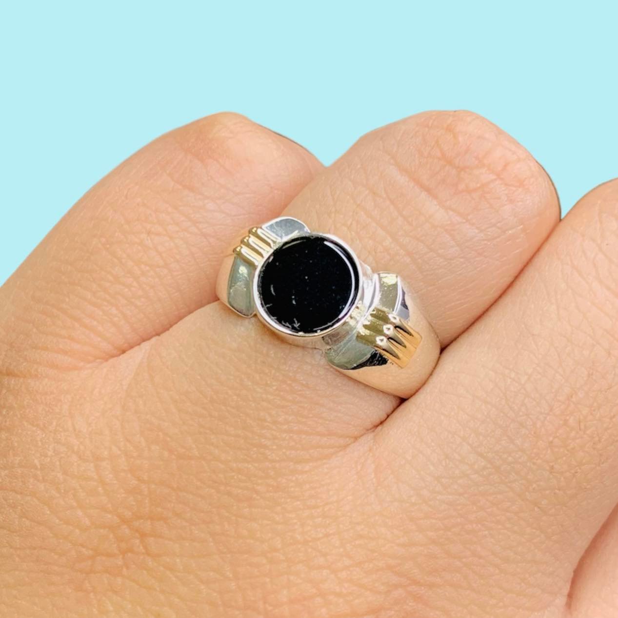 Anillo con Onix Redondo para Hombre Plata y Oro