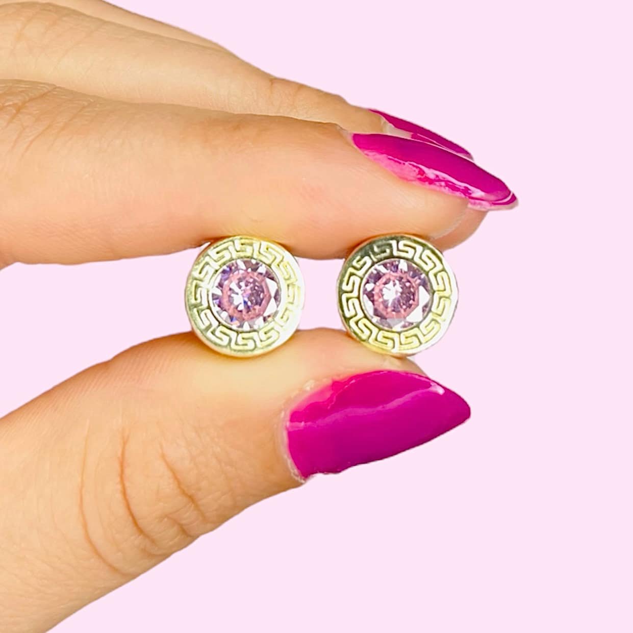 Aritos Guarda Griega con cubic rosa 11mm de Plata y Oro