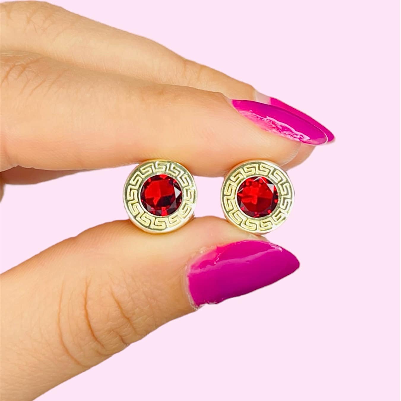 Aritos Guarda Griega con cubic Rubi 11mm plata y Oro