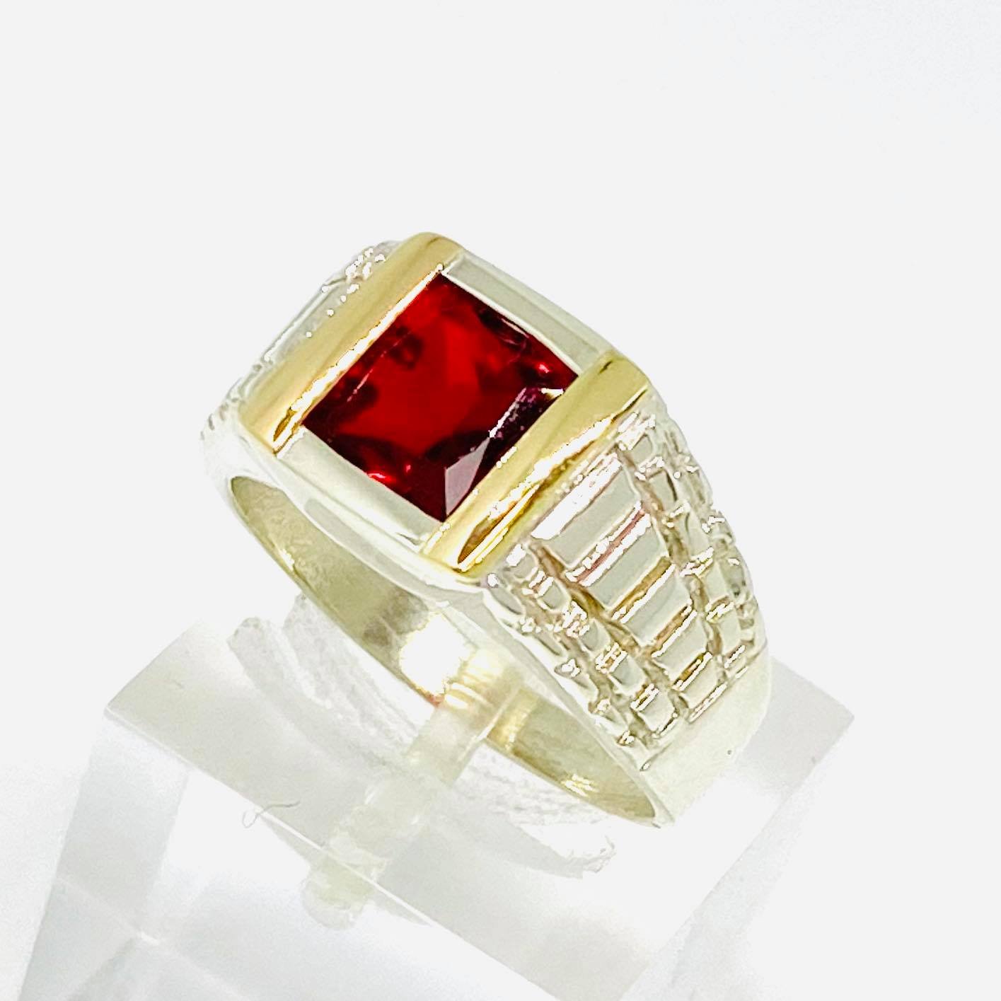 Anillo rollex con cubic cuadrado Rubi Plata y Oro