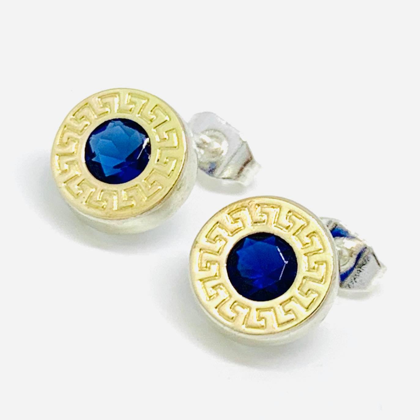 Aritos Guarda Griega Chico Zafiro plata y Oro