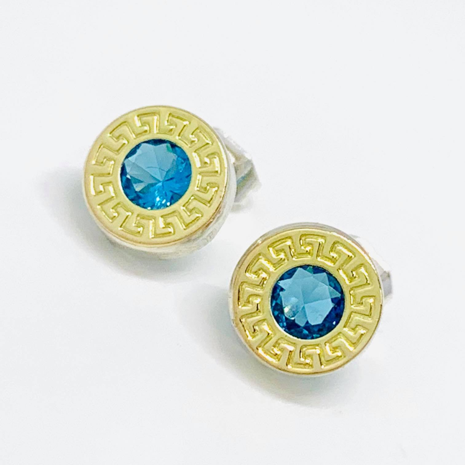 Aritos Guarda Griega Chico aguamarina plata y Oro