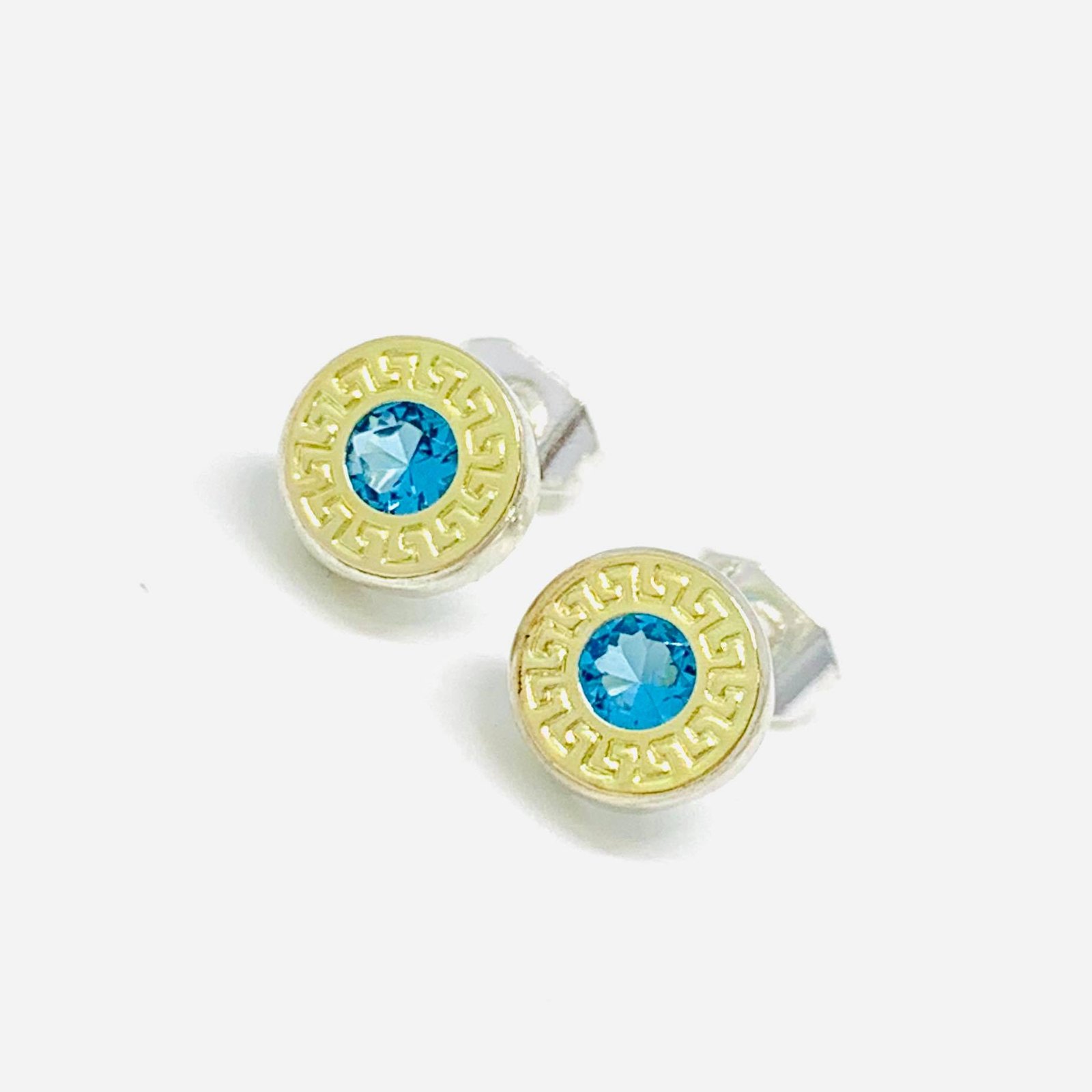 Aritos Guarda Griega mini aguamarina plata y Oro